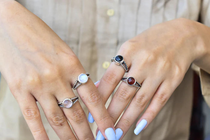Explore our women's ring collection, meticulously crafted from 925 solid sterling silver and adorned with natural healing crystals and stones. Each ring embodies elegance and wellness, resonating with your inner beauty. With care and precision, we've created pieces that not only enhance your style but also harness the healing energies of nature. Elevate your look and nurture your spirit with our exquisite selection of rings, where beauty and wellness intertwine seamlessly.