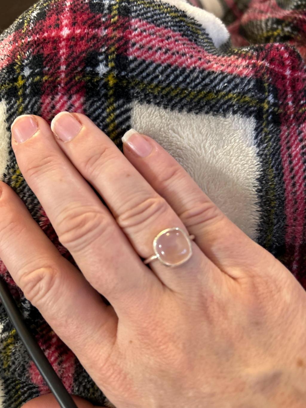 ✦ Wir stellen unseren bezaubernden Kissenring aus Rosenquarz vor, eine zeitlose und elegante Wahl für Ausflüge mit Freunden oder romantische Verabredungen.