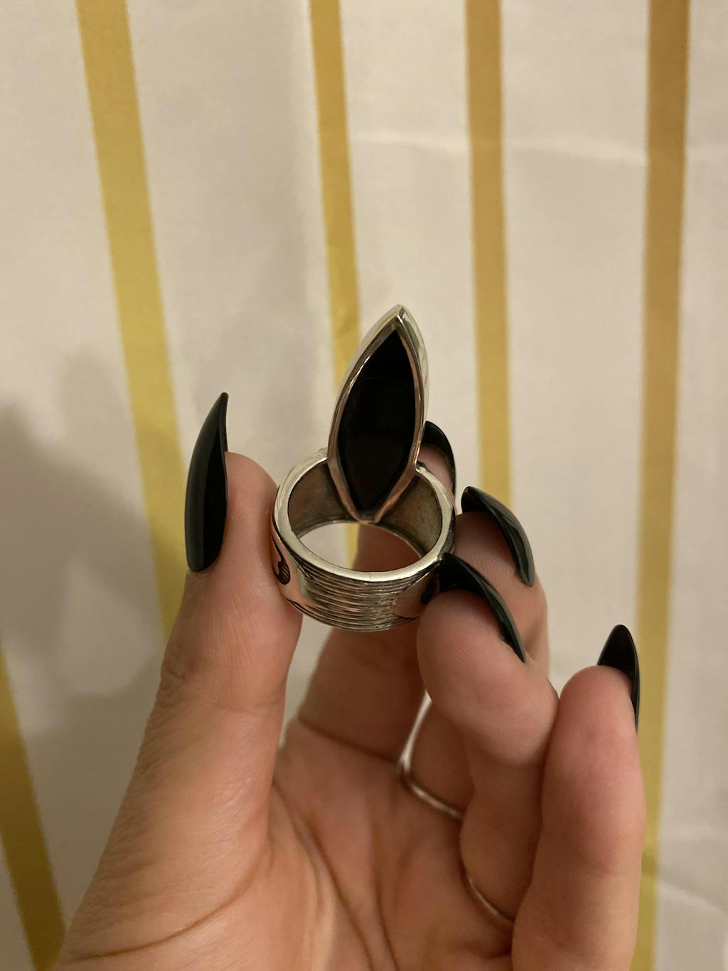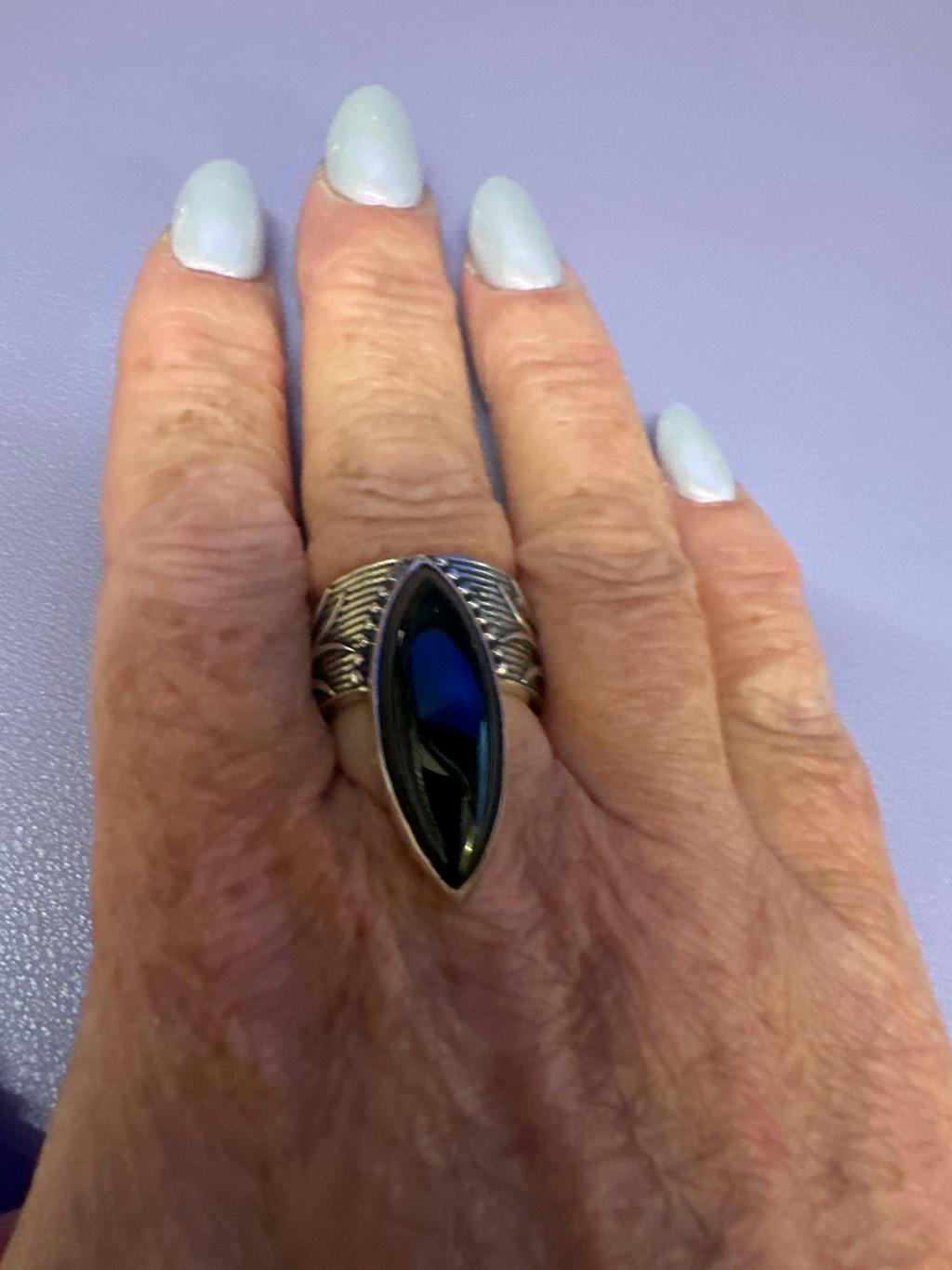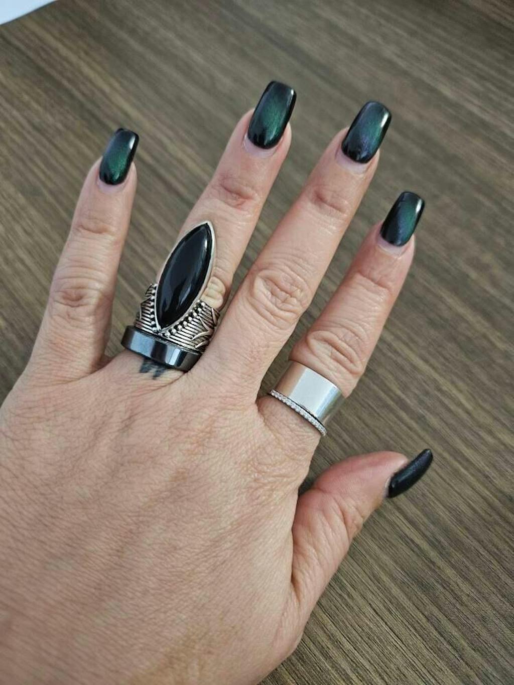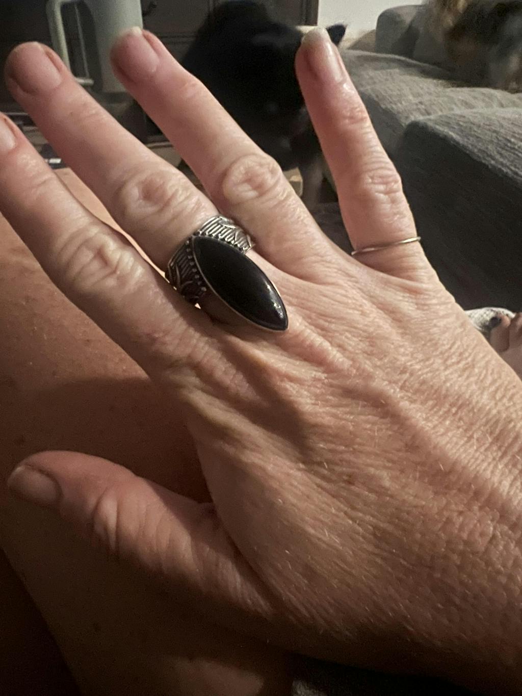 ✦ Lassen Sie sich von unserem Bohemian Marquise Black Onyx Delight Ring verzaubern. Dieses umwerfende Stück ist sorgfältig gefertigt und verfügt über einen auffälligen langen schwarzen Onyxstein in Marquise-Form, der wunderschön in ein oxidiertes Silber-Finish eingefasst ist.