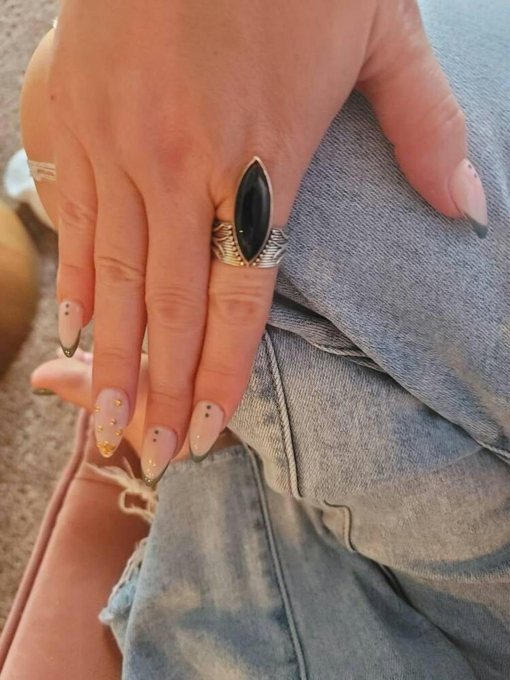 Das böhmisch inspirierte Design verleiht Ihrem Stil einen Hauch von Laune und freigeistigem Charme. Schwarzer Onyx gilt als Symbol für Stärke und Schutz und verleiht diesem einzigartigen Accessoire eine geheimnisvolle und kühne Note. Lassen Sie sich von der mystischen Energie des schwarzen Onyx und der unbeschwerten böhmischen Stimmung mit diesem bezaubernden Ring verzaubern.