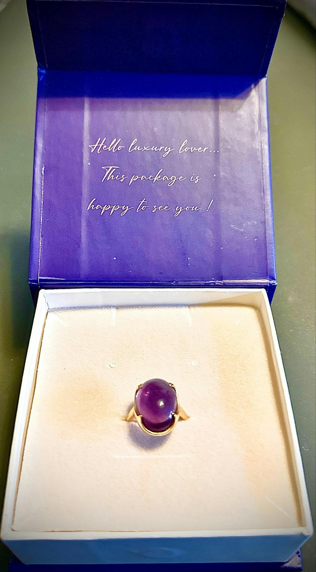 ✦ Unser riesiger Amethystring ist ein atemberaubendes und majestätisches Stück, das Eleganz und Pracht ausstrahlt. Dieser aus hochwertigen Materialien gefertigte Ring verfügt über einen großen und faszinierenden Amethyststein, der sicherlich jedermanns Aufmerksamkeit auf sich ziehen wird.