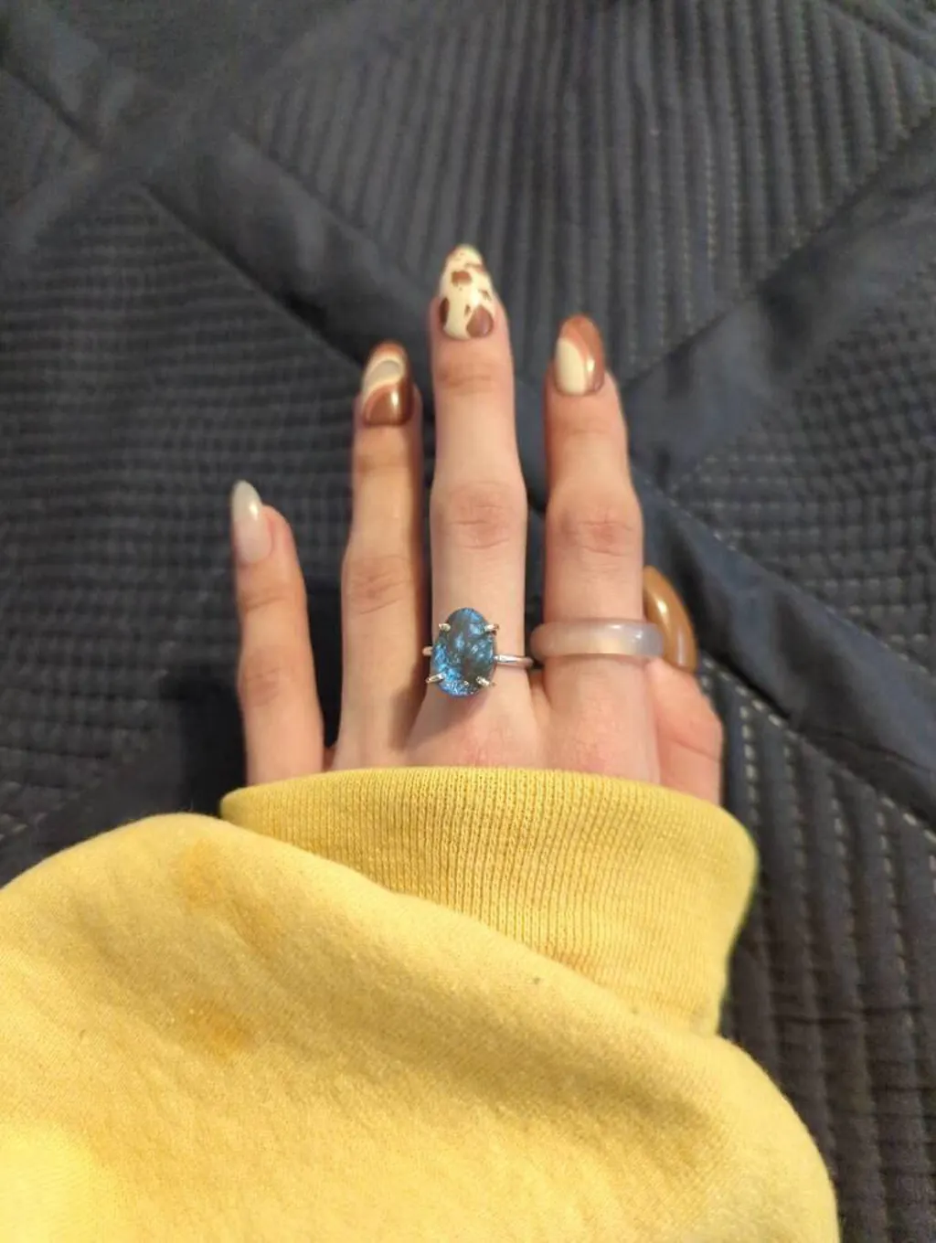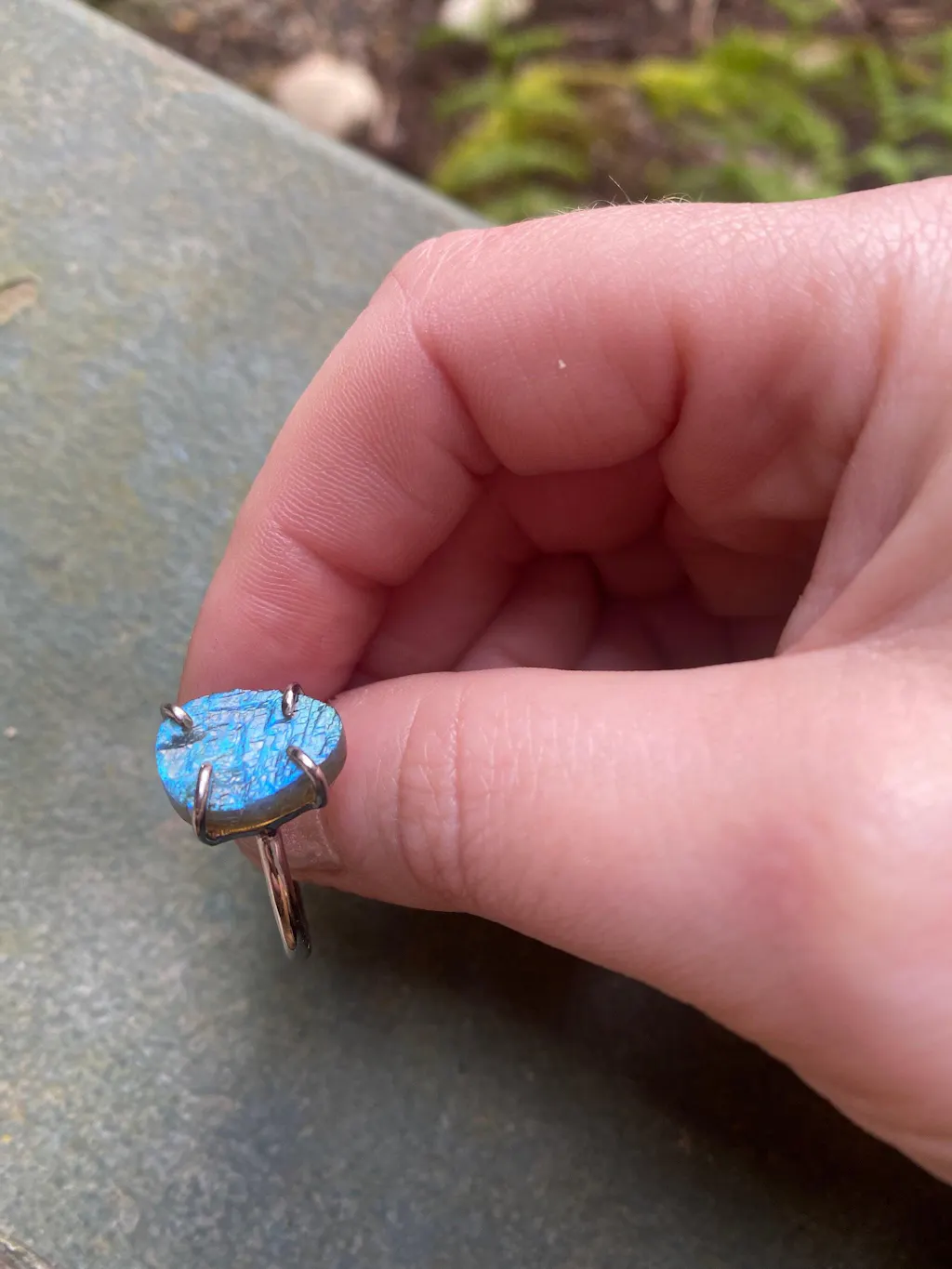Das schlichte und doch elegante Design des Rings lässt die natürliche Schönheit des Steins im Mittelpunkt stehen, eingefasst in ein langlebiges, hochwertiges Band für dauerhaften Tragekomfort. Dieser Ring ist perfekt für alle, die einzigartigen, eleganten Schmuck lieben, und ist auch ein schönes Geschenk für jeden besonderen Anlass.