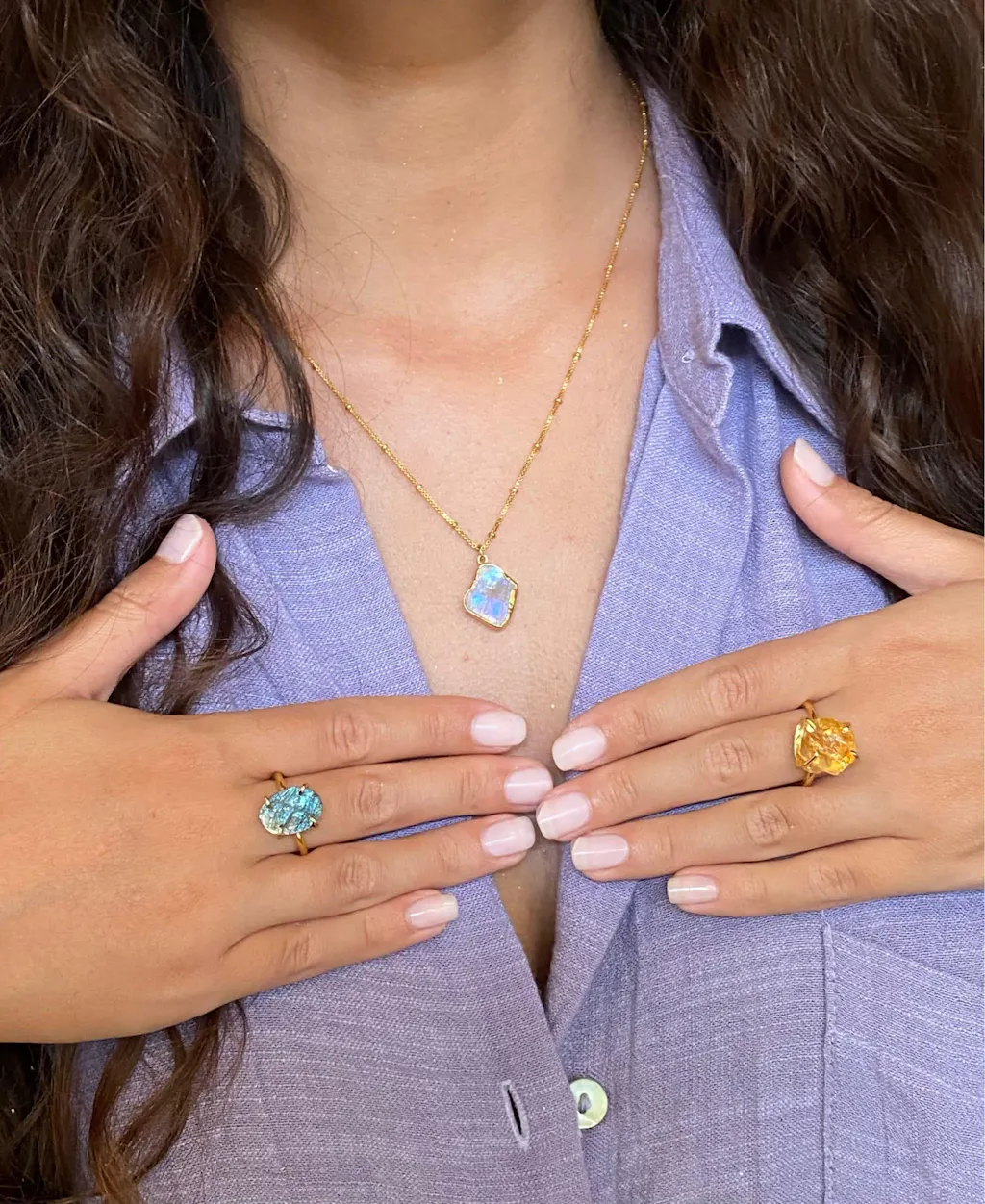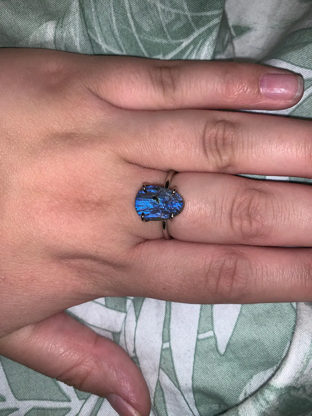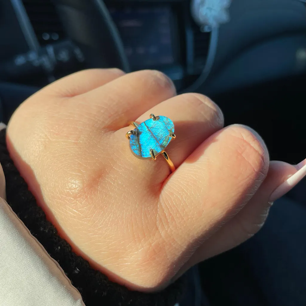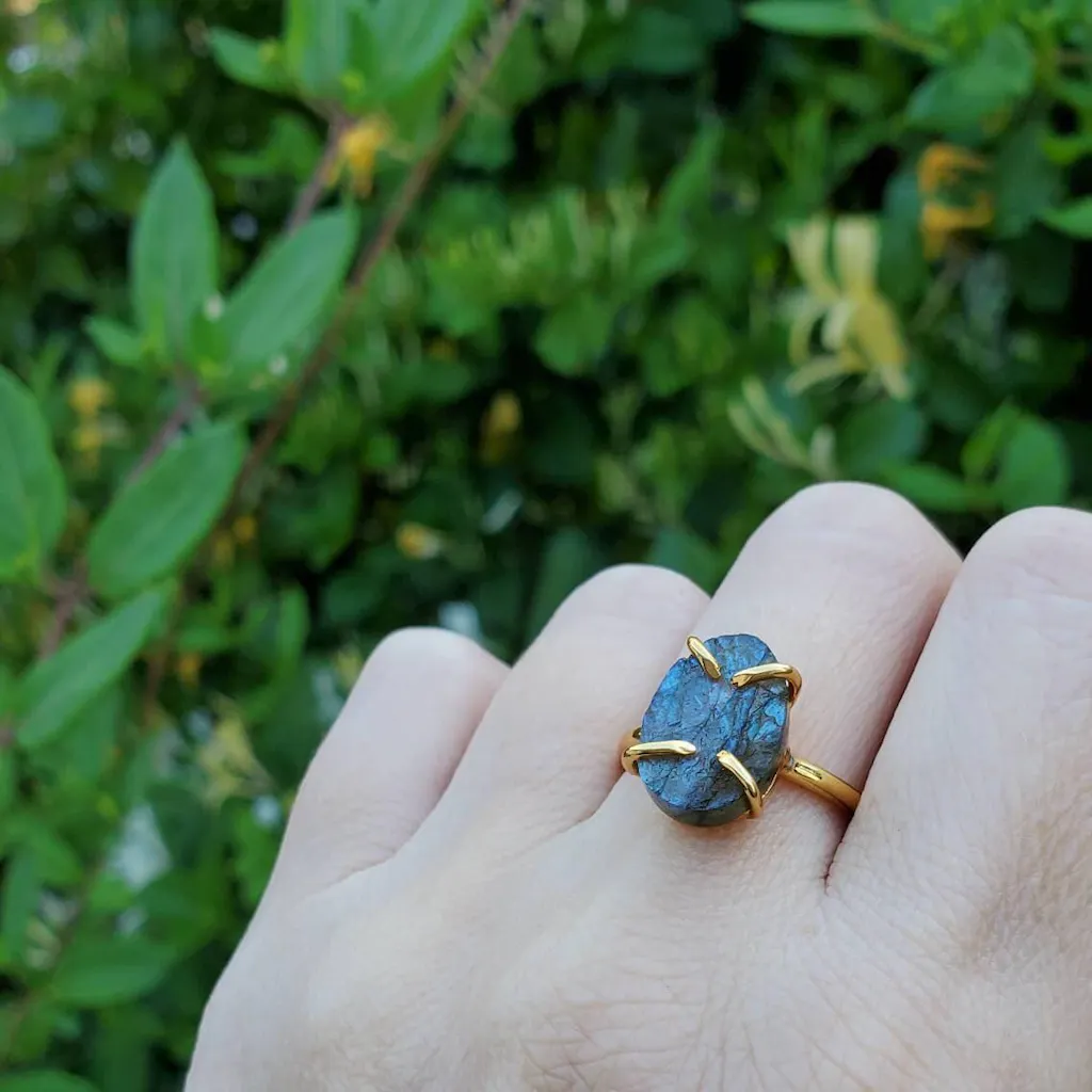 ✦ Unser Raw Magic Ring, ein einzigartiges Stück, das den bezaubernden Reiz des Rohlabradorits zur Geltung bringt. Labradorit, bekannt als Stein der Transformation und des Schutzes, wird sorgfältig aufgrund seines natürlichen Schillerns ausgewählt, wodurch ein faszinierendes Farbenspiel entsteht.