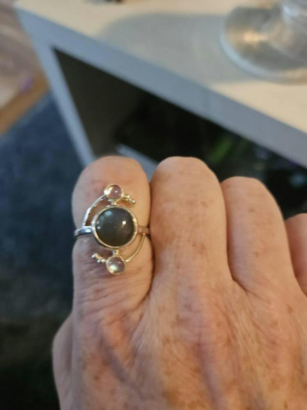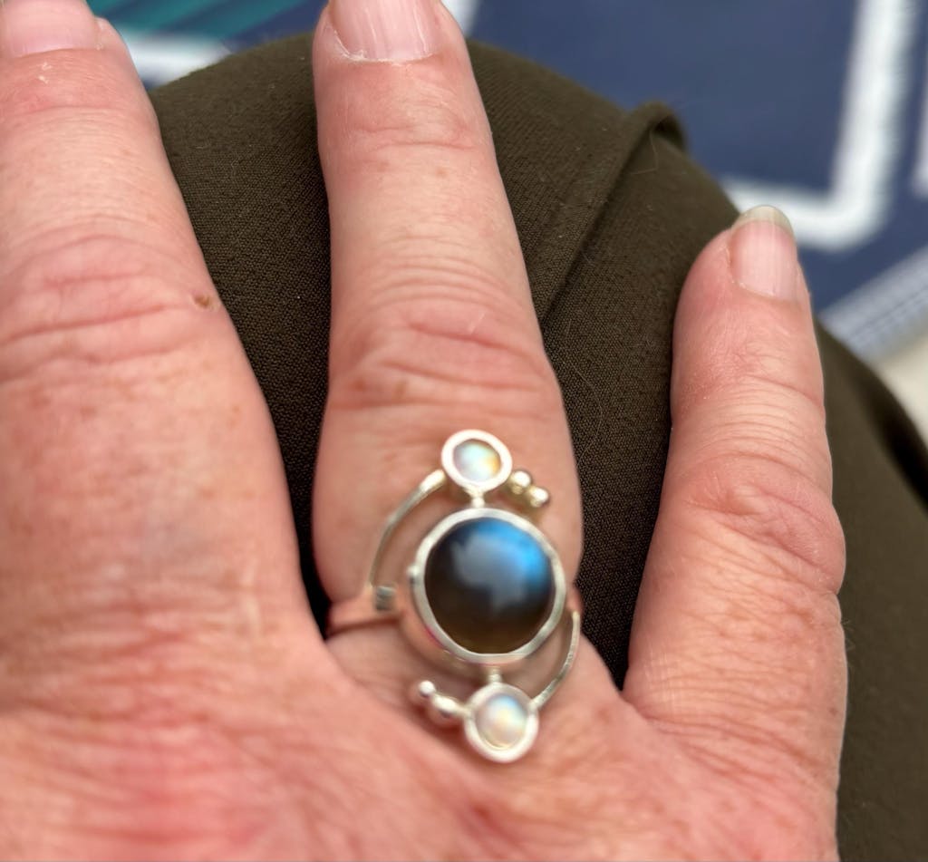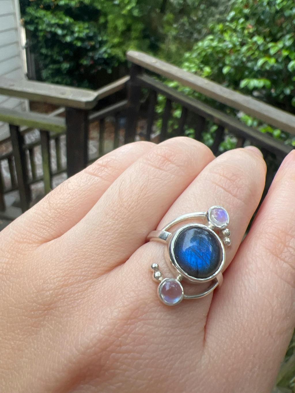 ✦ Introducing our captivating Moonstone Labradorite Everyday Ring, a perfect blend of elegance and versatility. Carefully crafted, this ring features both moonstone and labradorite gemstones.