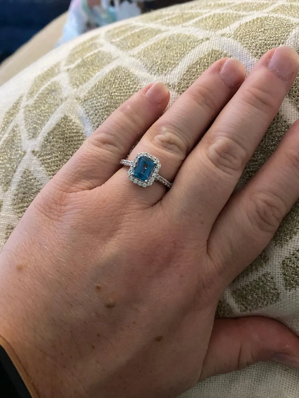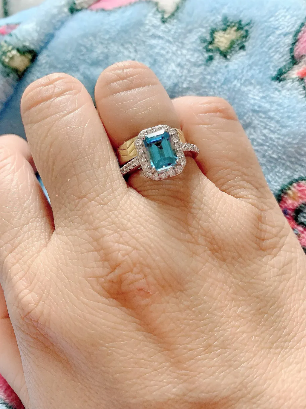 The modern design, paired with the classic blue topaz and silver combination, makes this ring a versatile accessory. It adds a touch of sophistication and elegance to both casual and formal outfits.