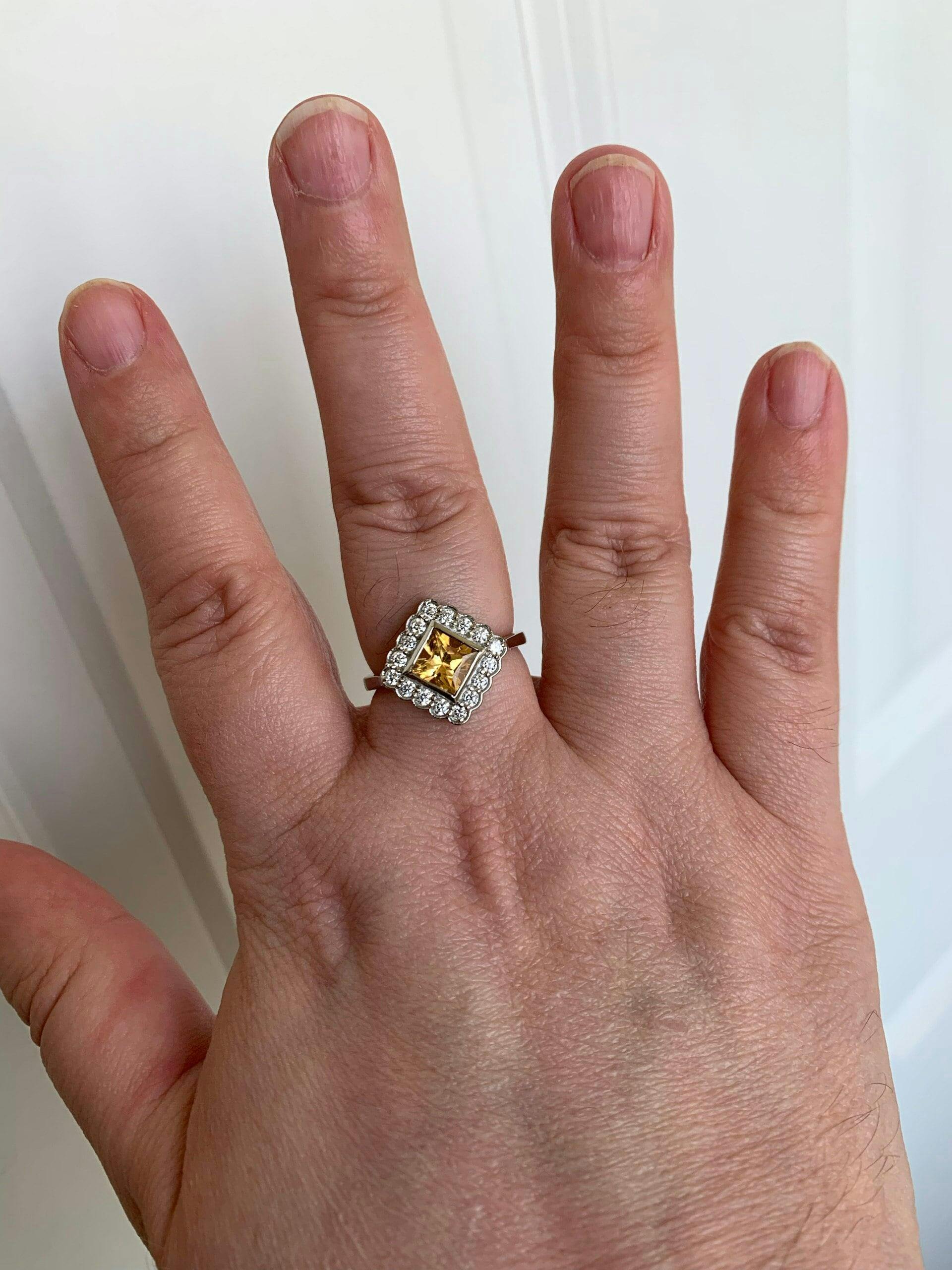 ✦ Carefully selected for its natural beauty, the citrine is set amidst sparkling CZs, creating a dazzling effect that makes it perfect for any special occasion. Crafted with attention to detail, this ring is designed to stand out and add a touch of sophistication to your style.