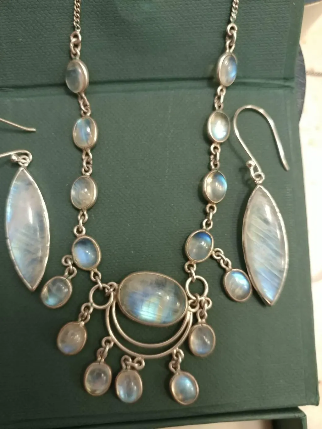 Rainbow moonstone, symbolizing intuition and inner strength, adds a meaningful touch to this stunning accessory.