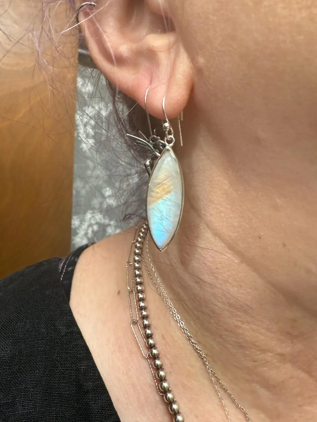 For the girl who loves the night sky and a hint of attitude, these long rainbow moonstone earrings are a perfect fit.