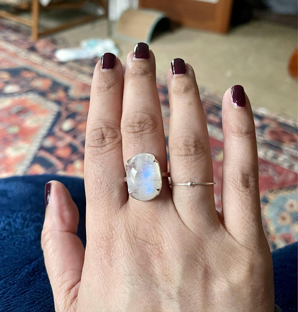 ✦ Our huge moonstone ring is a stunning and majestic piece that exudes elegance and splendor. Crafted from high-quality materials, this ring features a large and captivating moonstone that is sure to catch everyone's attention.