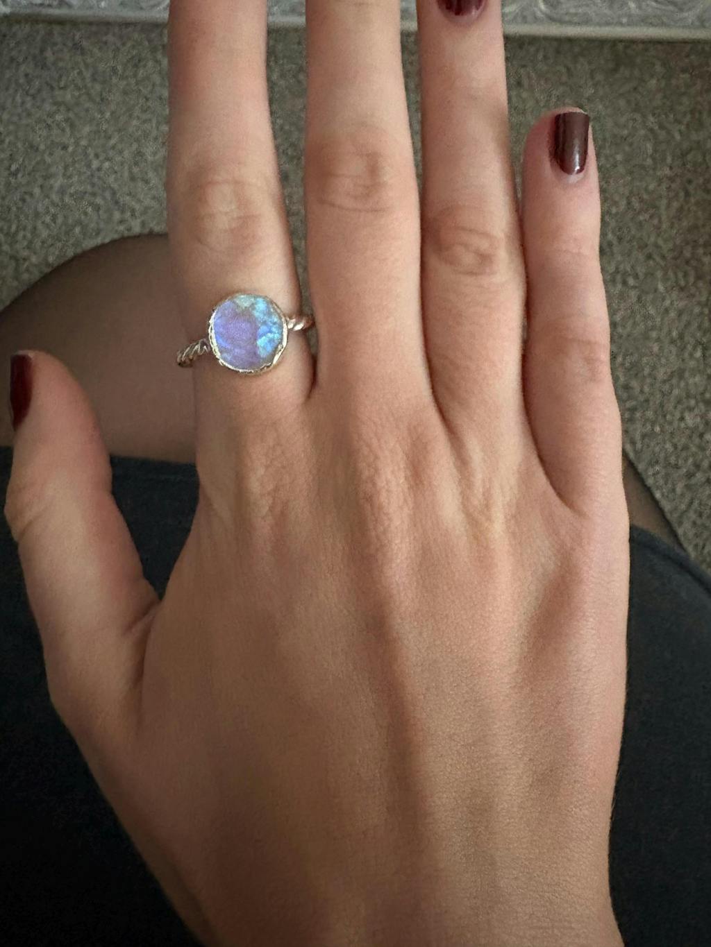 Perfect as a personal talisman or a charming statement piece, the Lunar Whirl Raw Moonstone Ring symbolizes self-expression and inner peace. Let this ring inspire you to embrace the magic of the universe and celebrate your unique path under the moon's gentle light.