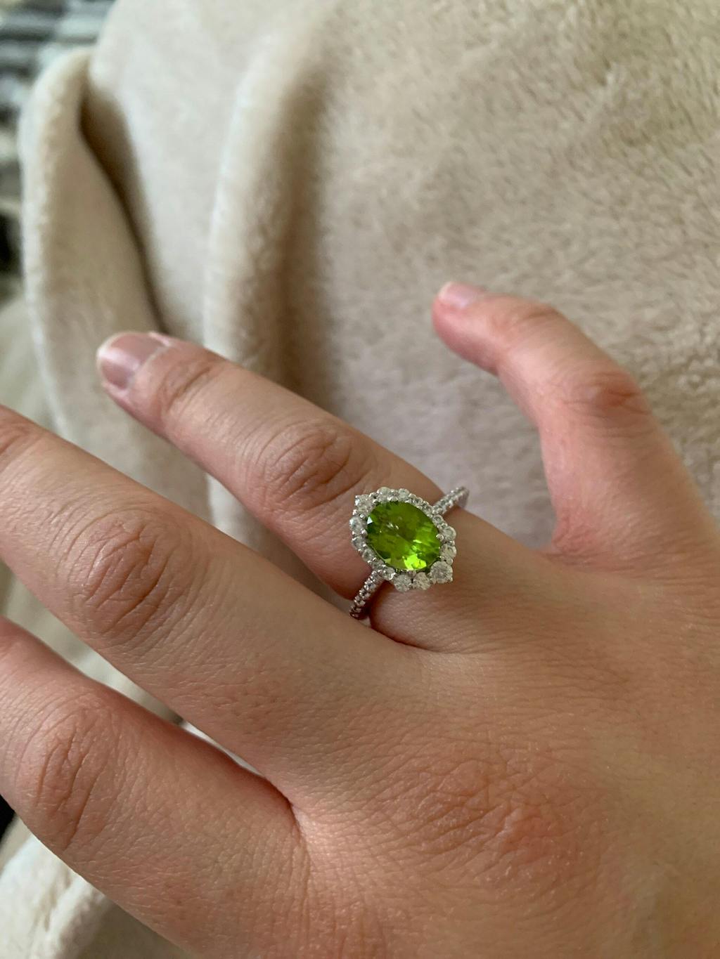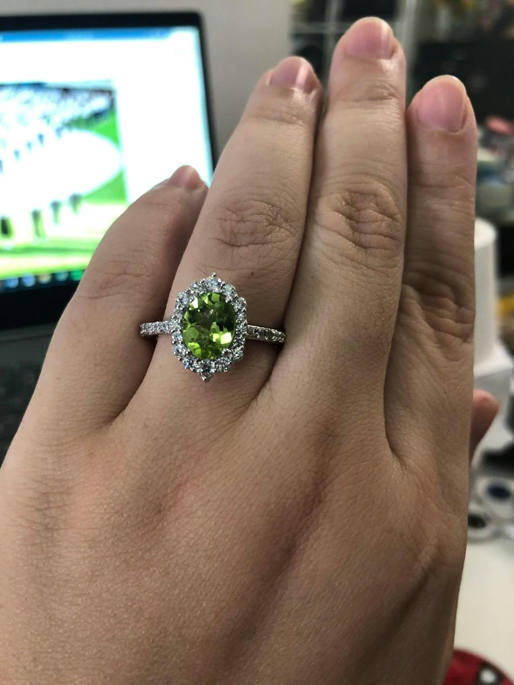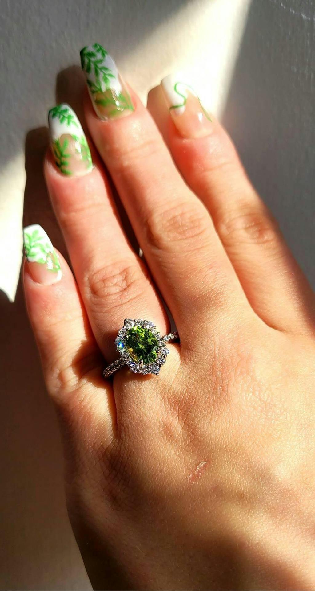 At the heart of this exquisite piece lies a stunning peridot gemstone. Known for its vibrant green hue, peridot is believed to bring about positivity, vitality, and prosperity. Wear this ring to add a touch of vintage glamour to any outfit while embracing the positive energy of peridot.